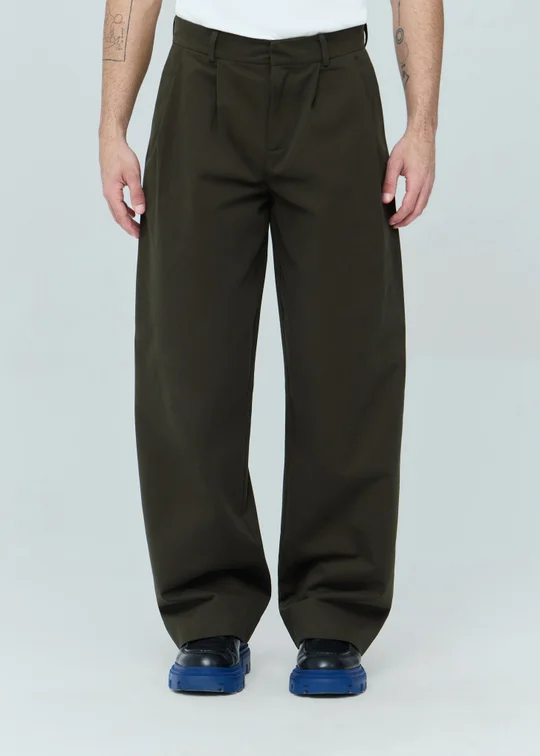 Широкие брюки с классической посадкой из итальянского хлопка в темно-зеленом цвете