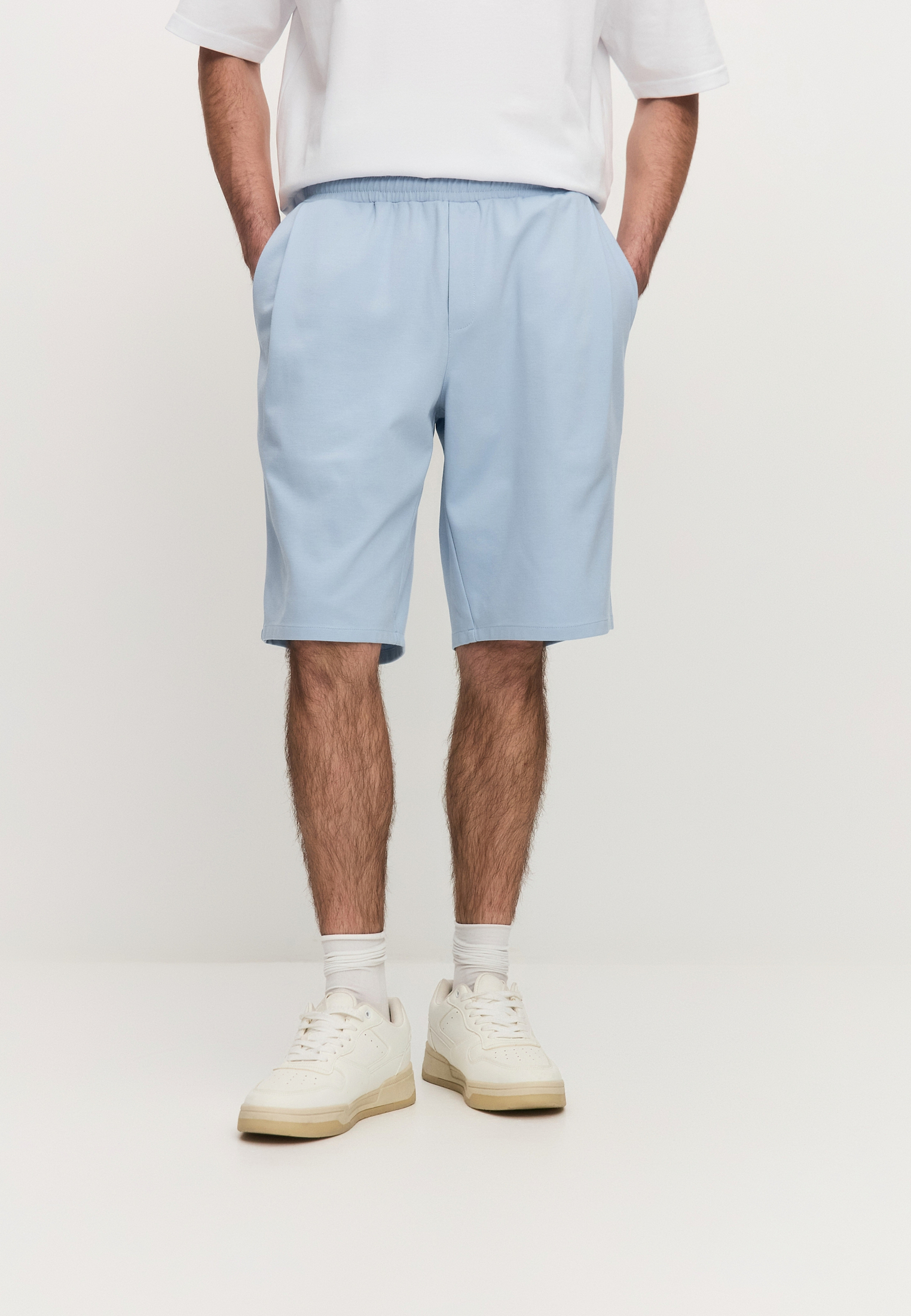 Шорты прямого кроя на резинке из вискозы в небесно-голубом цвете
