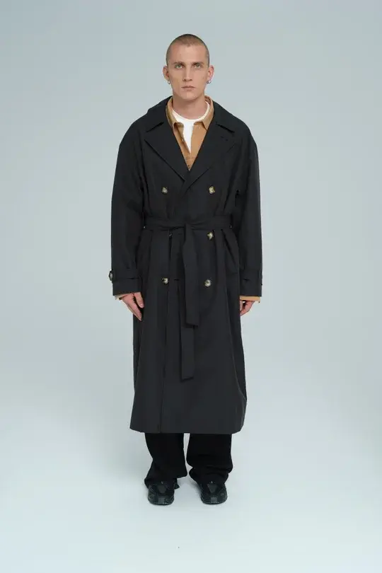 Двубортный удлиненный тренч свободного кроя с поясом